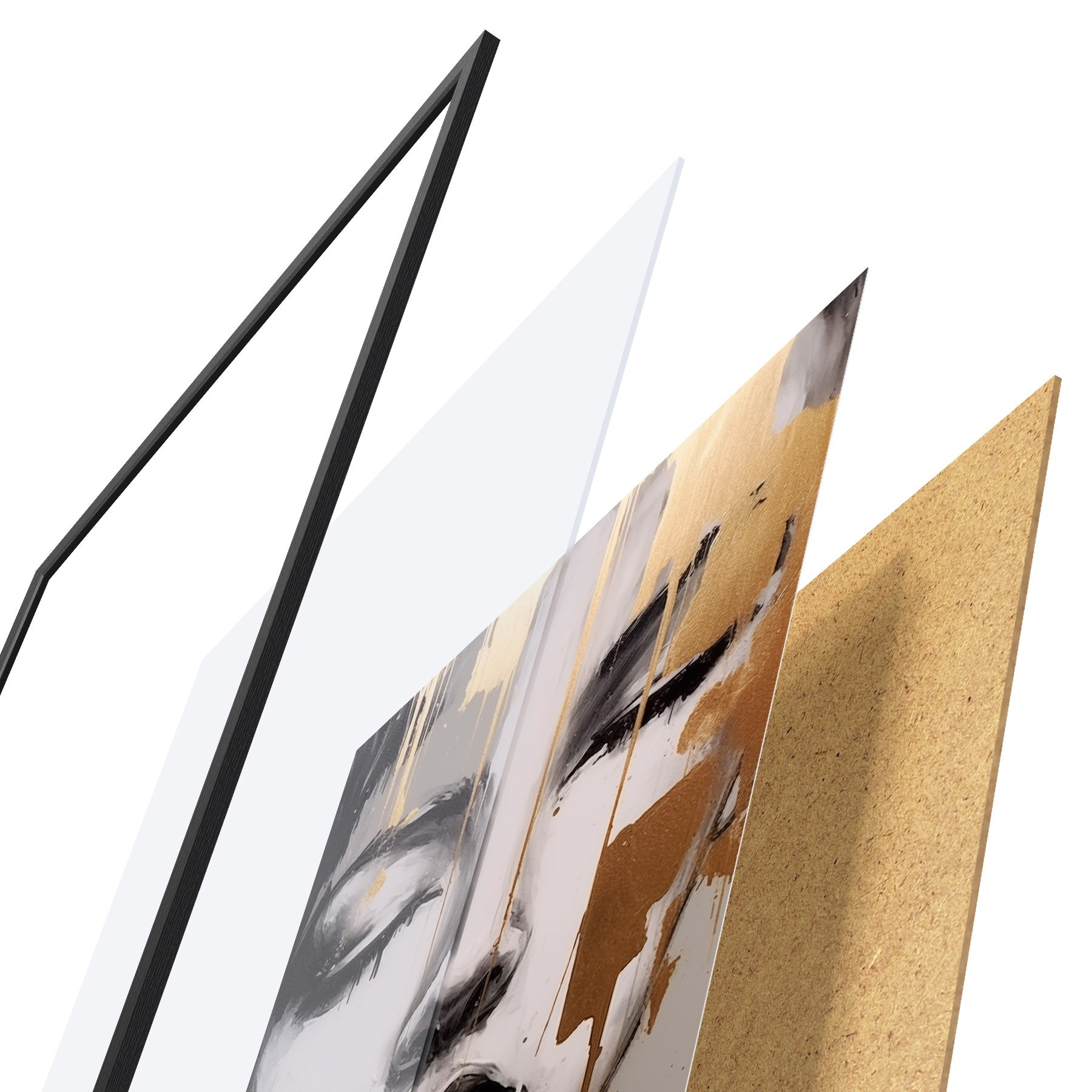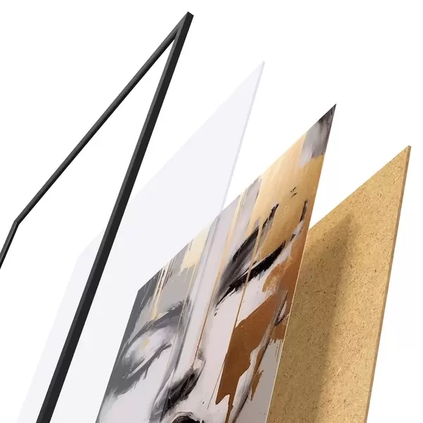 Das Poster besteht aus einem Rahmen, Plexiglas, einem gedruckten Bild und einer Rückwand aus Spanplatten. Dank der Halterungen auf der Rückseite kann das Poster sofort an die Wand gehängt werden.