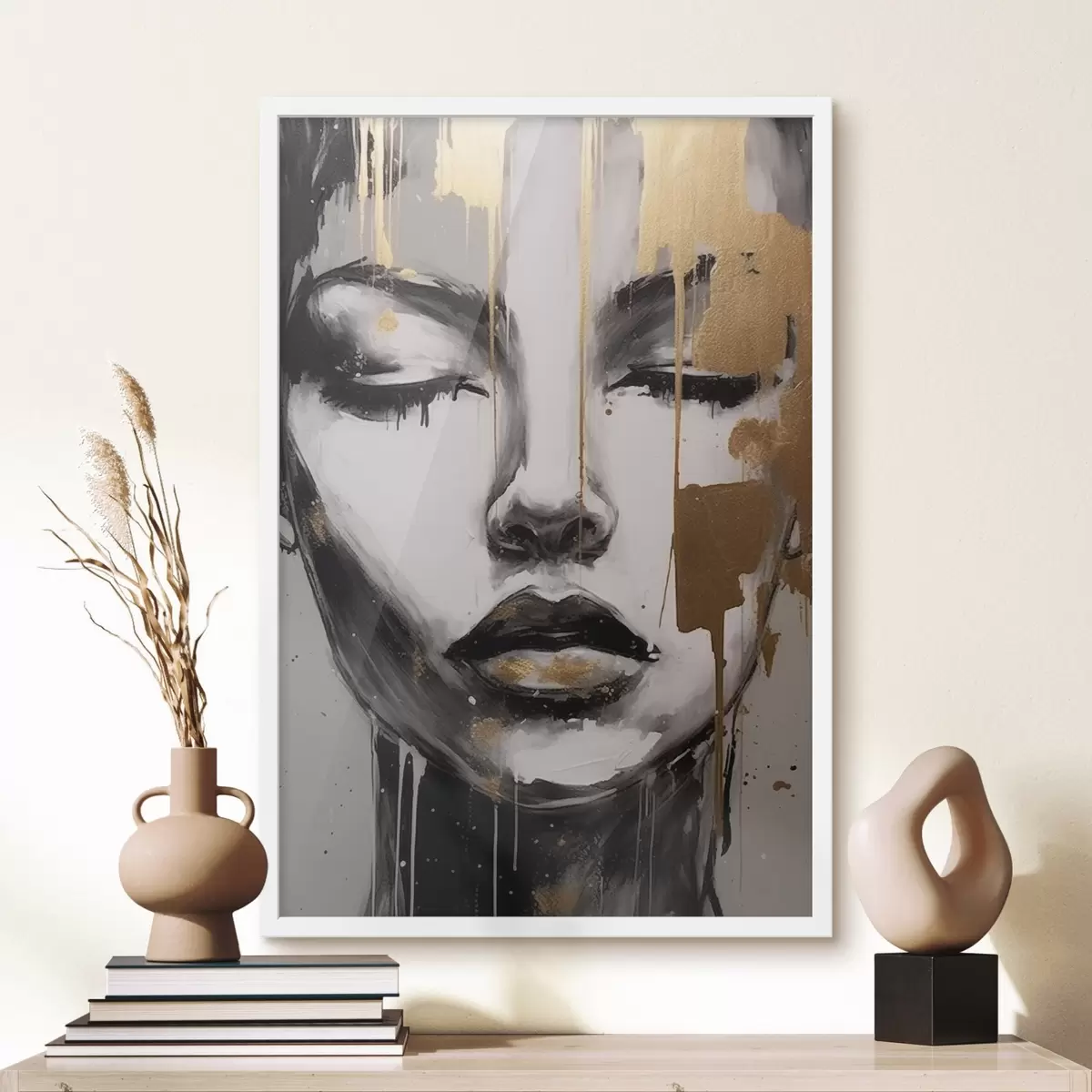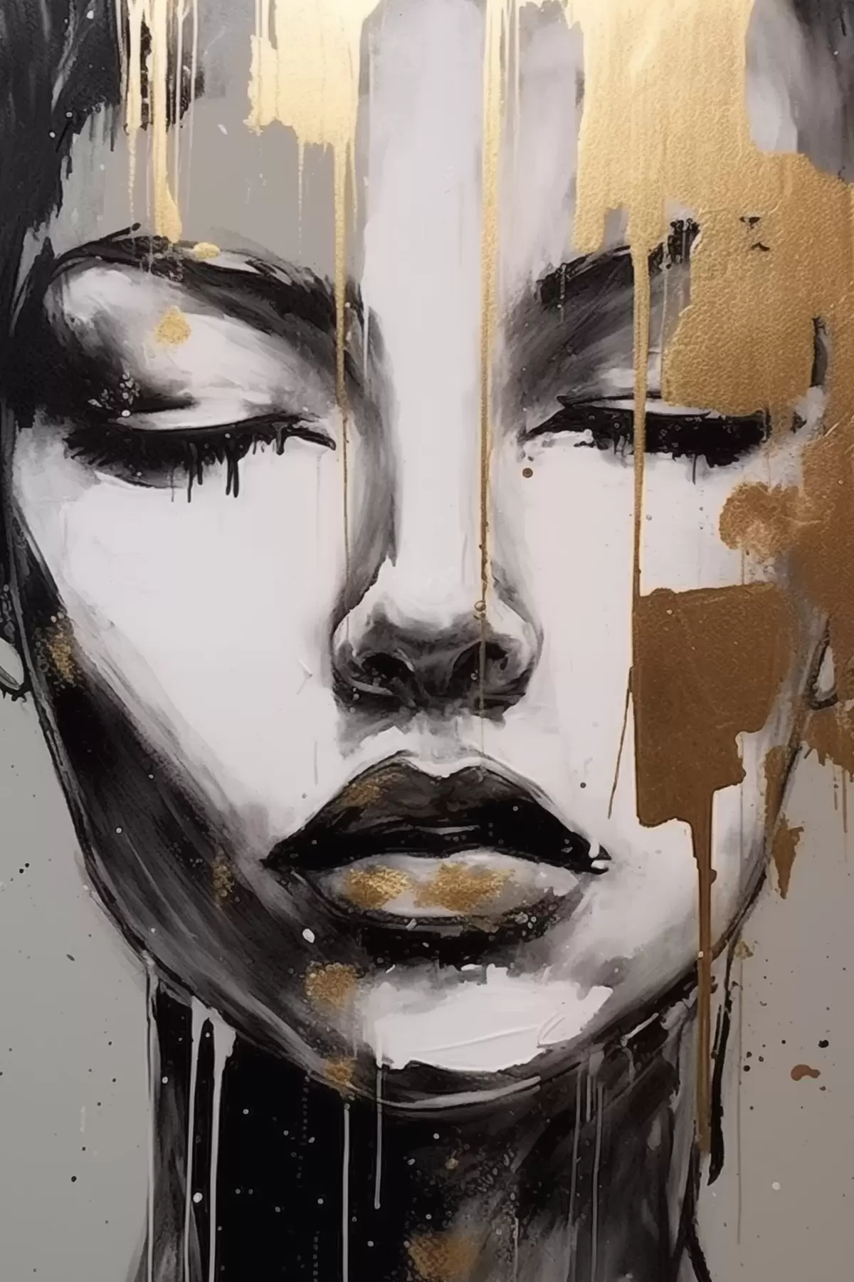 Poster Schwarz-Weiß-Porträt mit abstrakten Elementen Nr f42481