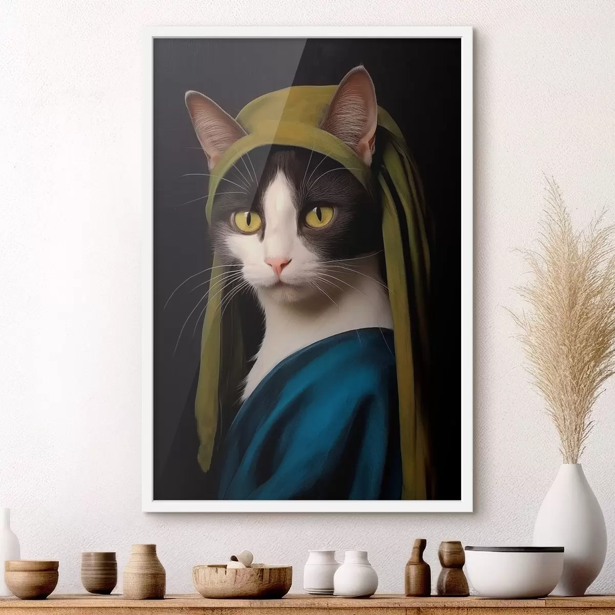 Poster Katze im Porträtstil mit Perlenohrring Nr f42486