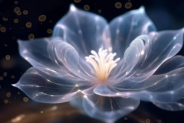 Poster Helle Blume mit transparenten Blütenblättern auf dunklem Hintergrund Nr f42488