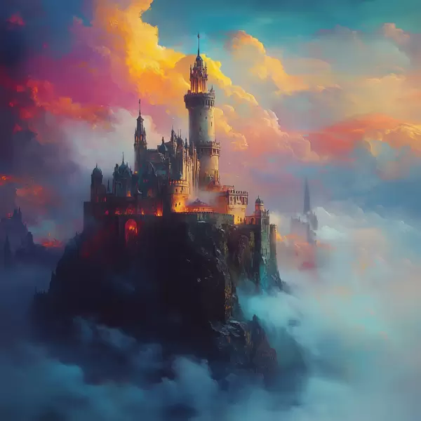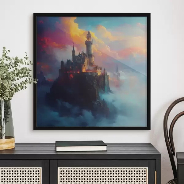 Poster Burg auf einem Felsen in den Wolken Nr f42501