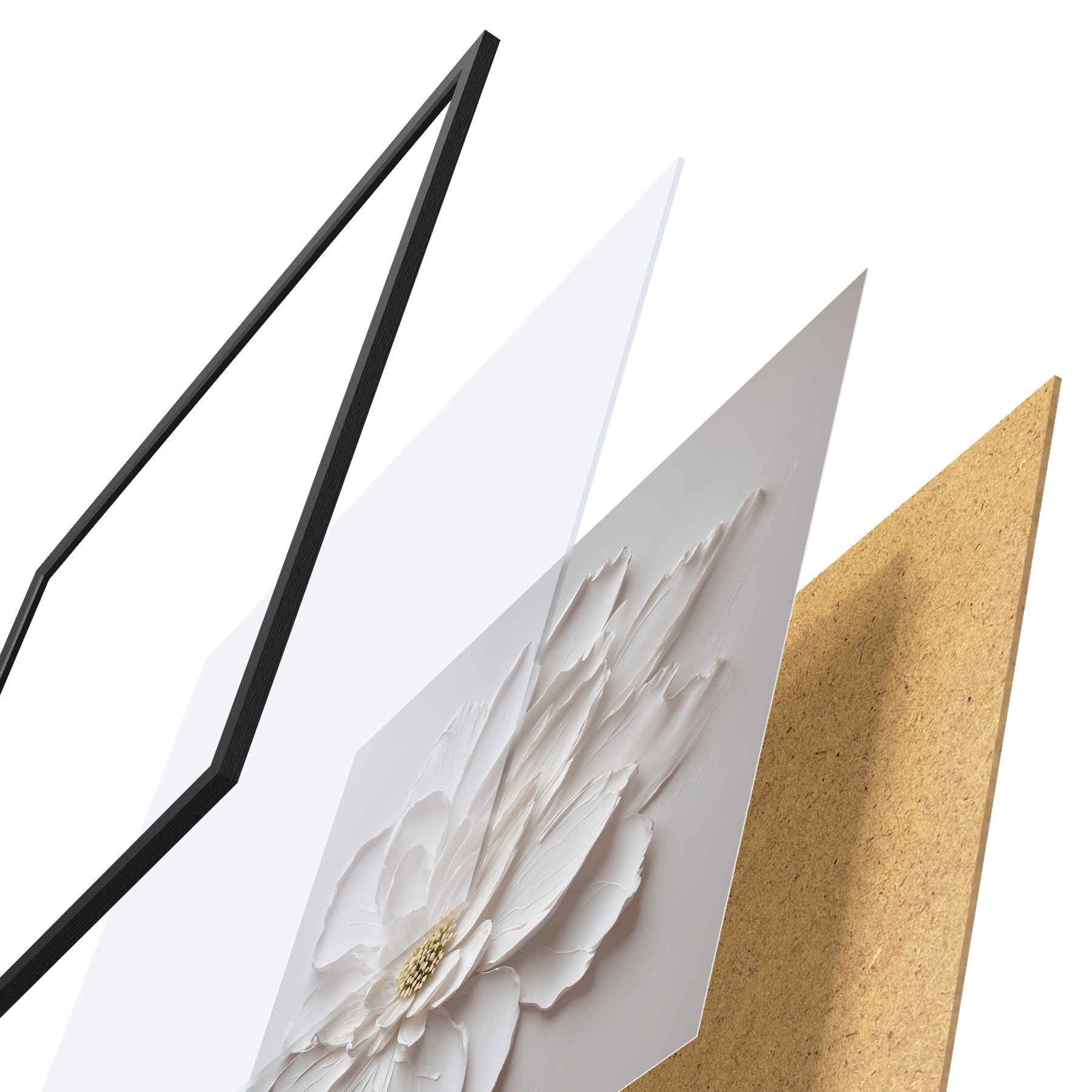 Das Poster besteht aus einem Rahmen, Plexiglas, einem gedruckten Bild und einer Rückwand aus Spanplatten. Dank der Halterungen auf der Rückseite kann das Poster sofort an die Wand gehängt werden.