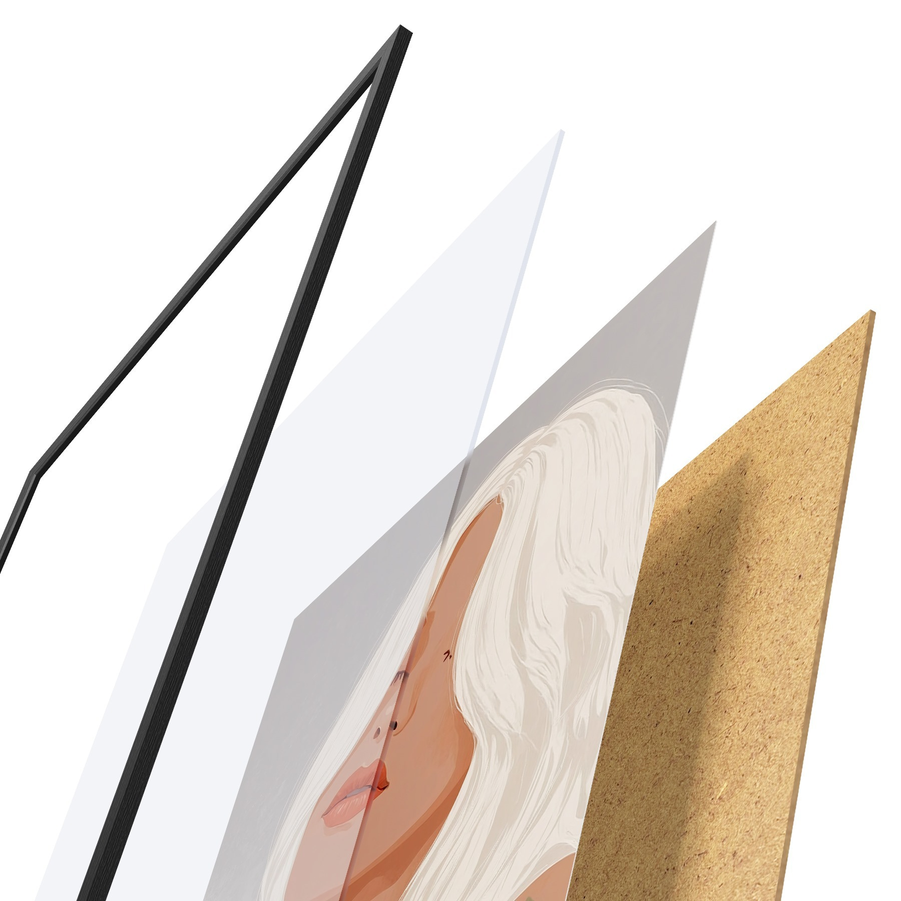 Das Poster besteht aus einem Rahmen, Plexiglas, einem gedruckten Bild und einer Rückwand aus Spanplatten. Dank der Halterungen auf der Rückseite kann das Poster sofort an die Wand gehängt werden.