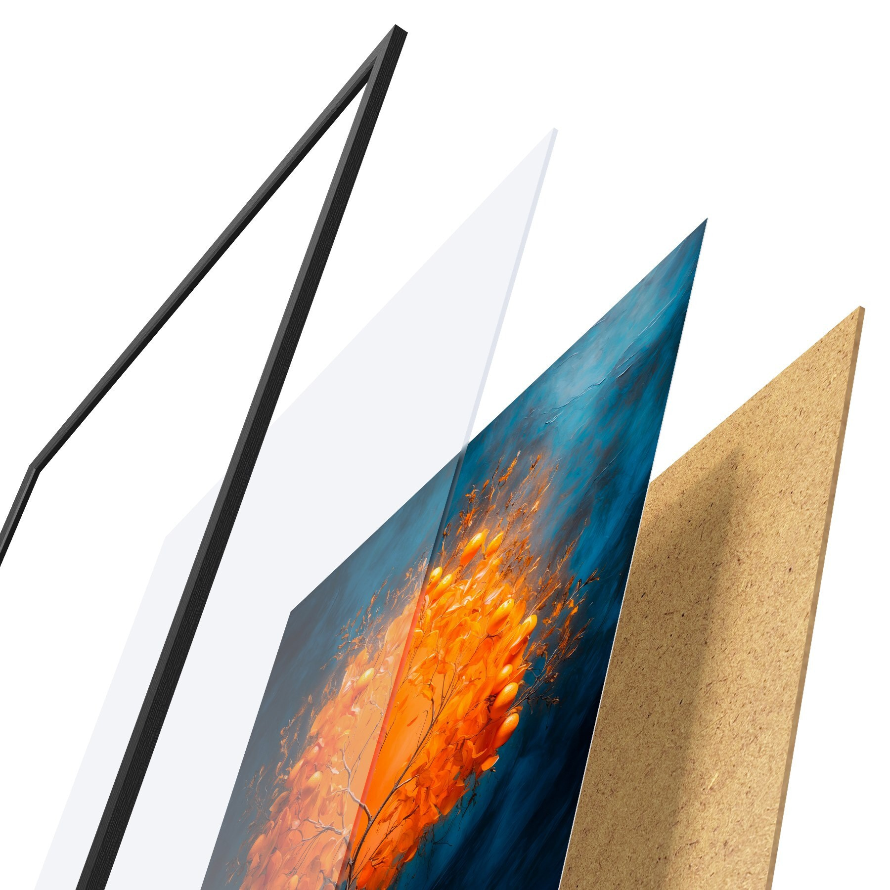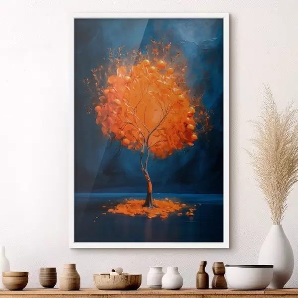 Poster Orange Baum auf blauem Hintergrund in Acrylmalerei Stil Nr f42525