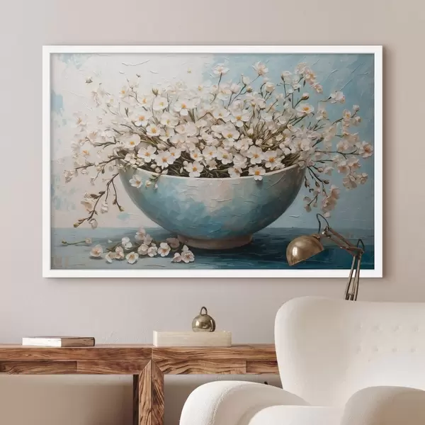 Poster Weiße kleine Blumen in einem Topf Nr f42533
