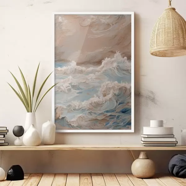 Poster Abstraktes tobendes Meer im Stil der Ölmalerei f42539