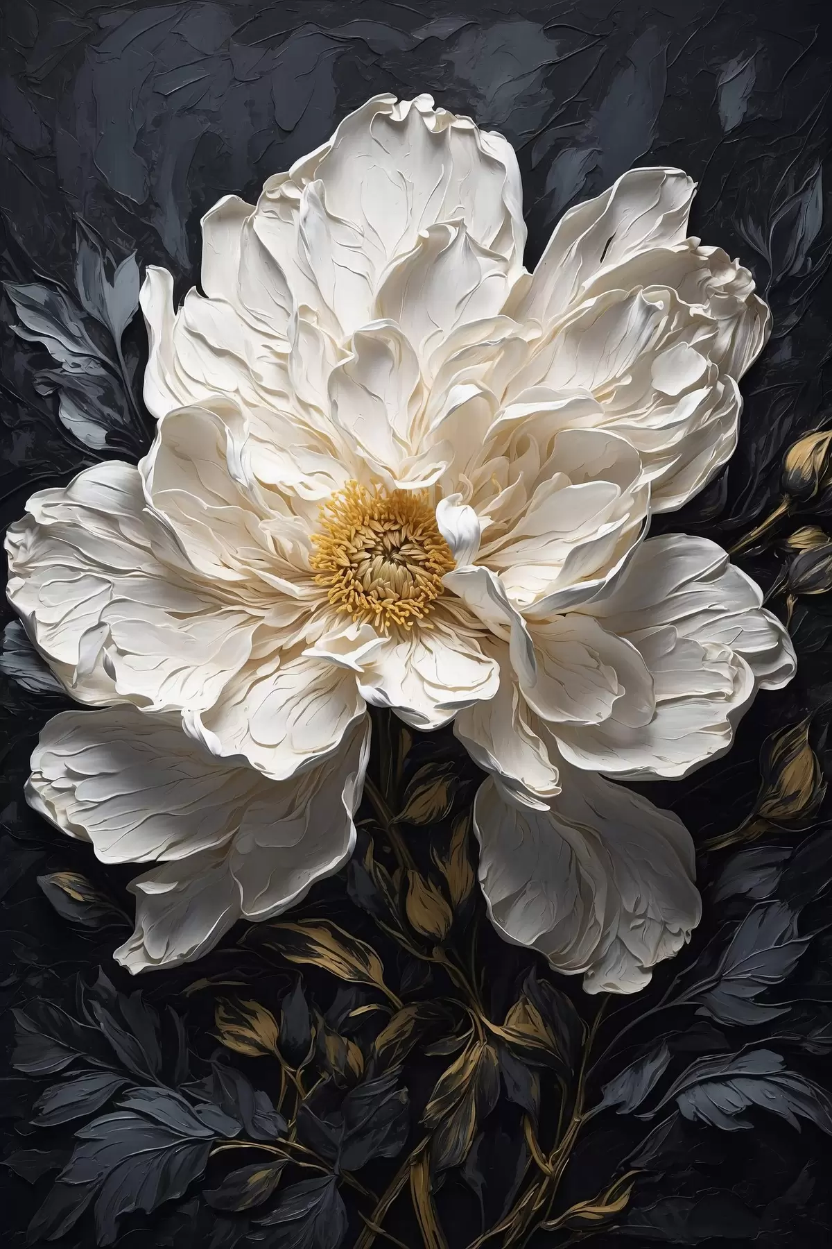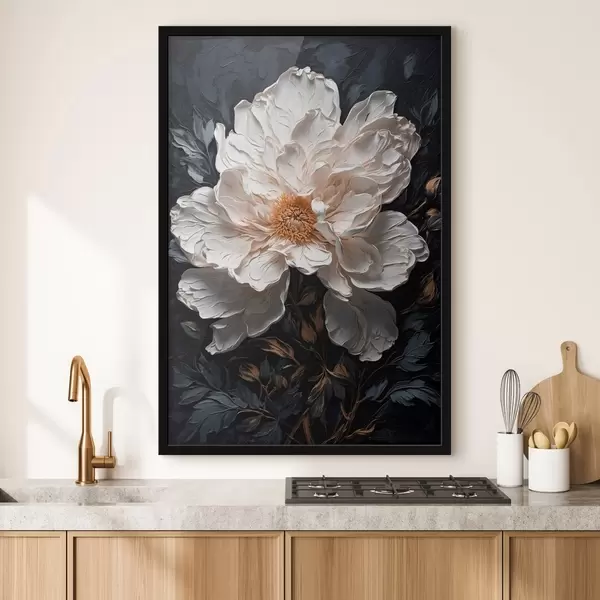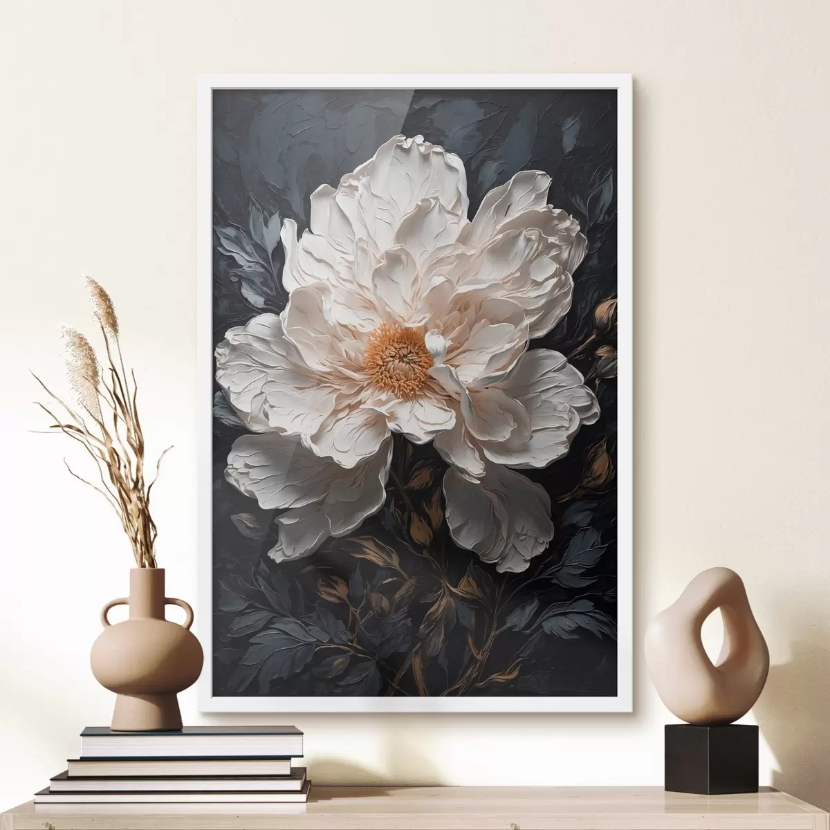Poster Weiße Blume auf schwarzem Hintergrund im Stil der Ölmalerei Nr f42544