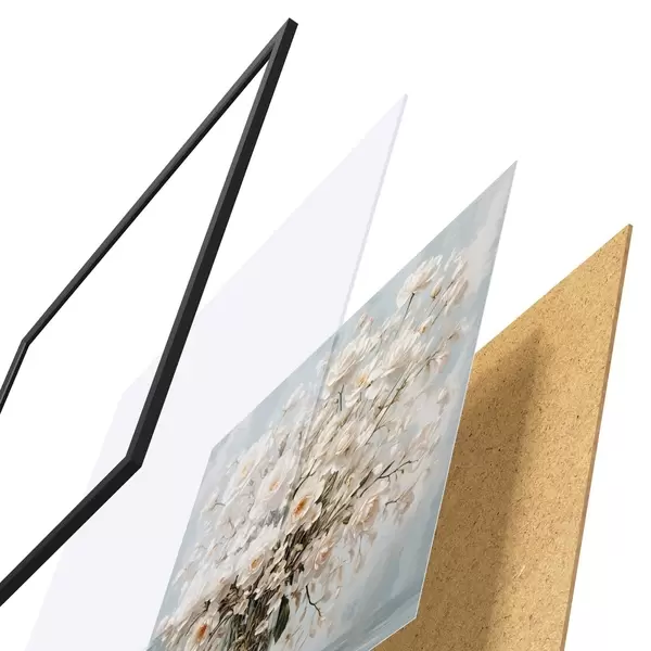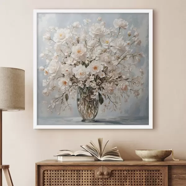 Poster Weiße Blumen in transparenter Vase in Acrylmalerei Stil Nr f42545