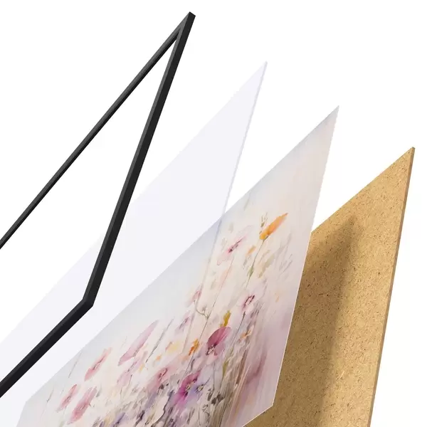 Das Poster besteht aus einem Rahmen, Plexiglas, einem gedruckten Bild und einer Rückwand aus Spanplatten. Dank der Halterungen auf der Rückseite kann das Poster sofort an die Wand gehängt werden.