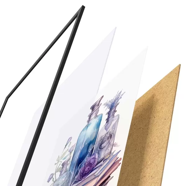 Das Poster besteht aus einem Rahmen, Plexiglas, einem gedruckten Bild und einer Rückwand aus Spanplatten. Dank der Halterungen auf der Rückseite kann das Poster sofort an die Wand gehängt werden.