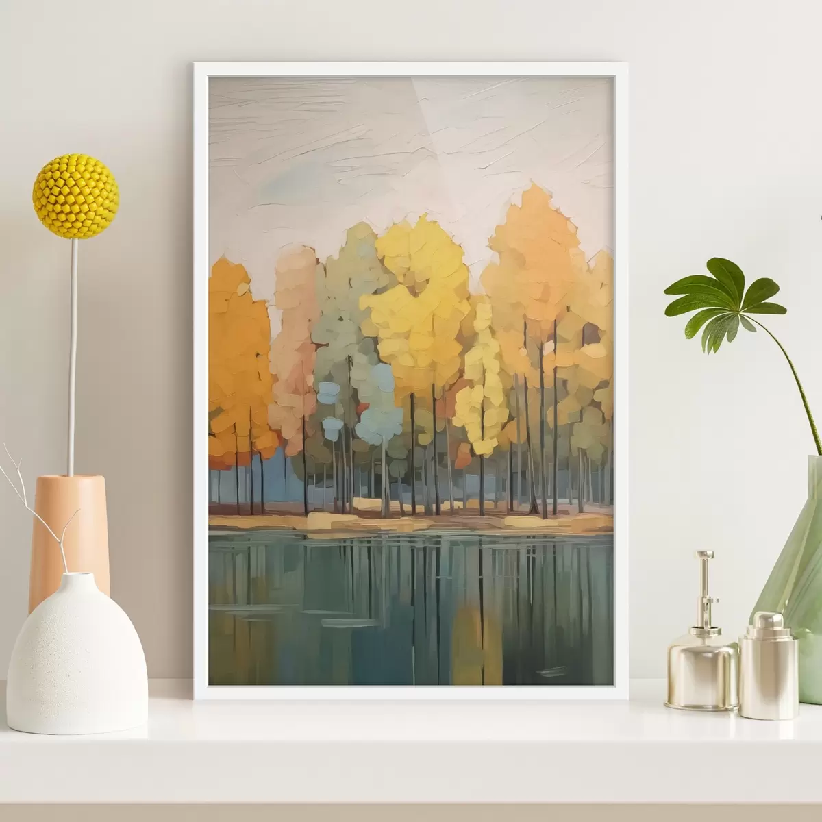 Poster Herbst Hain am Teich Nachahmung der Malerei Nr f42586