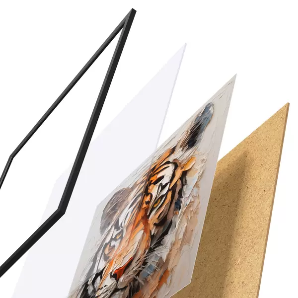 Das Poster besteht aus einem Rahmen, Plexiglas, einem gedruckten Bild und einer Rückwand aus Spanplatten. Dank der Halterungen auf der Rückseite kann das Poster sofort an die Wand gehängt werden.