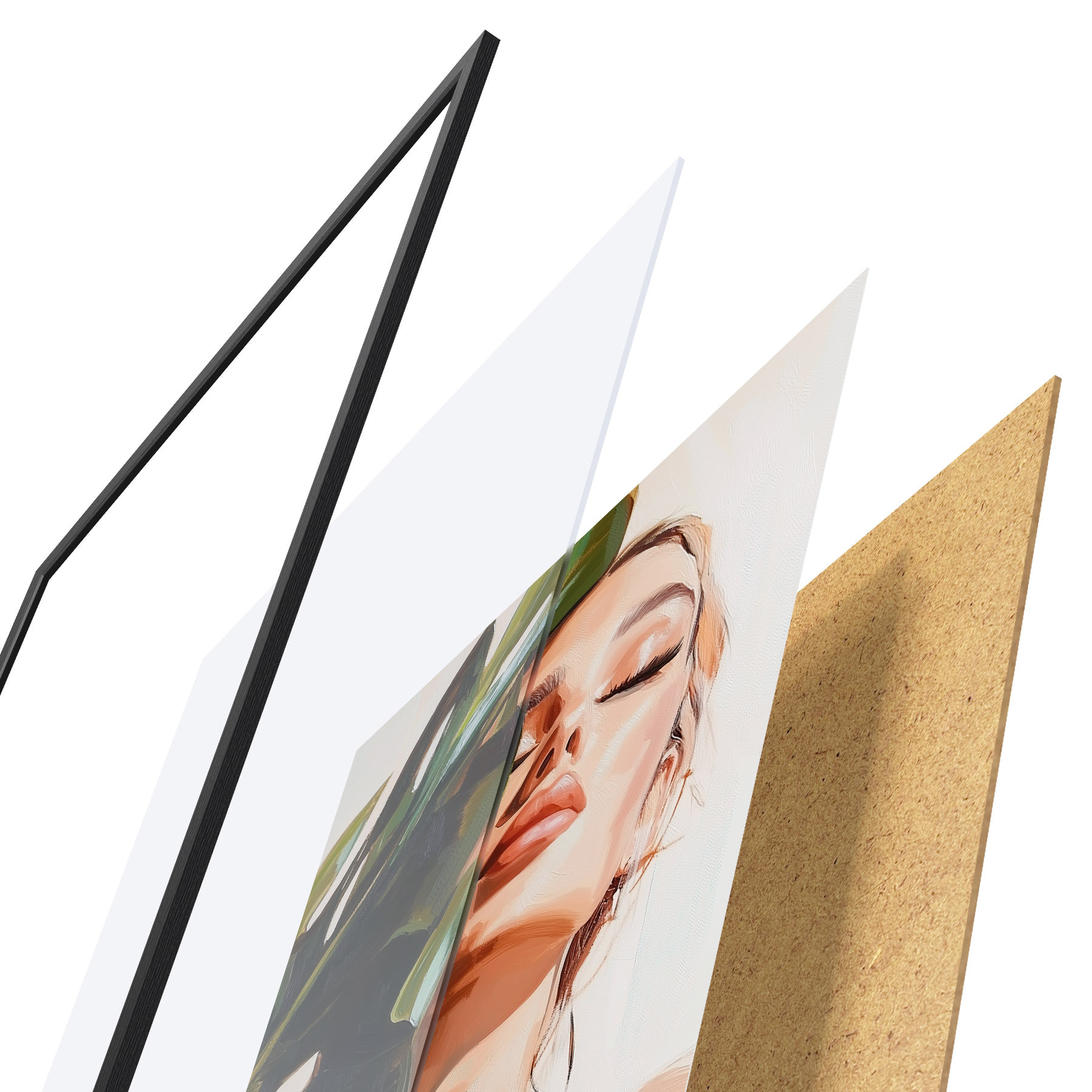 Das Poster besteht aus einem Rahmen, Plexiglas, einem gedruckten Bild und einer Rückwand aus Spanplatten. Dank der Halterungen auf der Rückseite kann das Poster sofort an die Wand gehängt werden.