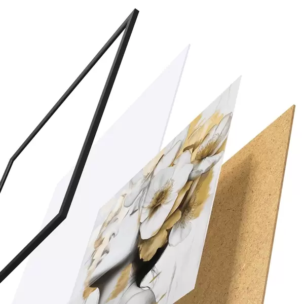 Das Poster besteht aus einem Rahmen, Plexiglas, einem gedruckten Bild und einer Rückwand aus Spanplatten. Dank der Halterungen auf der Rückseite kann das Poster sofort an die Wand gehängt werden.