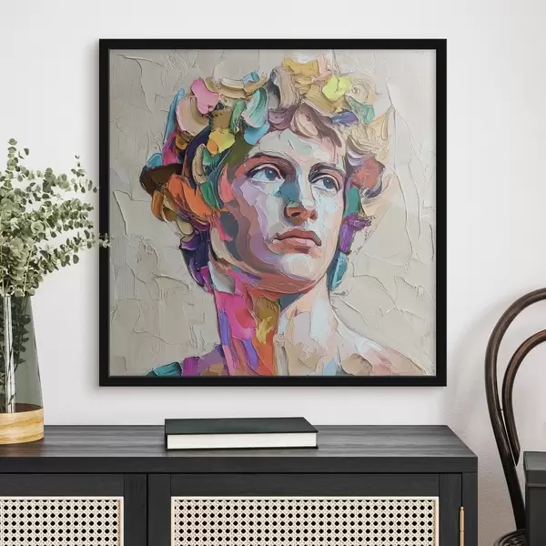 Poster Kopf von David mit mehrfarbigen Strichen f42607