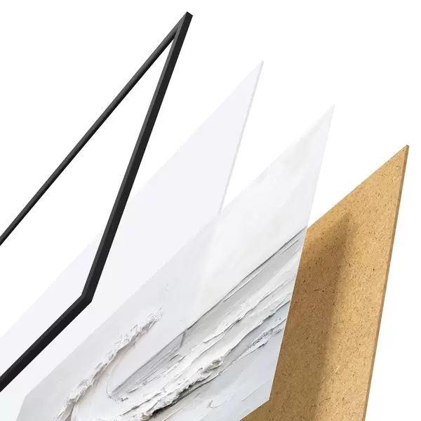 Das Poster besteht aus einem Rahmen, Plexiglas, einem gedruckten Bild und einer Rückwand aus Spanplatten. Dank der Halterungen auf der Rückseite kann das Poster sofort an die Wand gehängt werden.