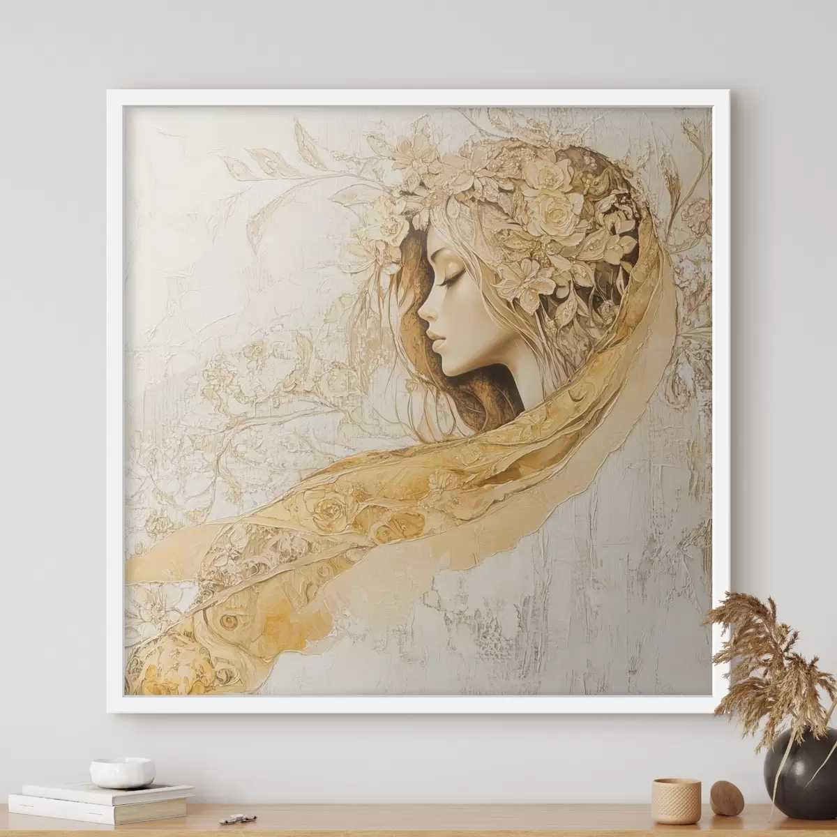 Poster Sanftes Mädchen im Stil der Ölmalerei mit Blumen Nr f42616