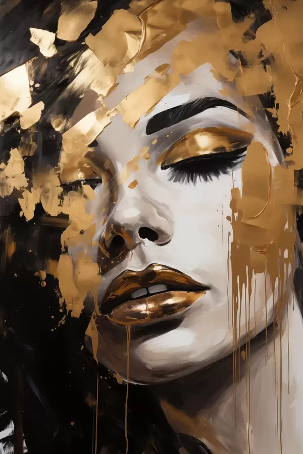 Poster Ein abstraktes Porträt einer Frau mit reichen Pinselstrichen in warmen Tönen, die ein lebendiges und dramatisches Bild schaffen Nr f42619