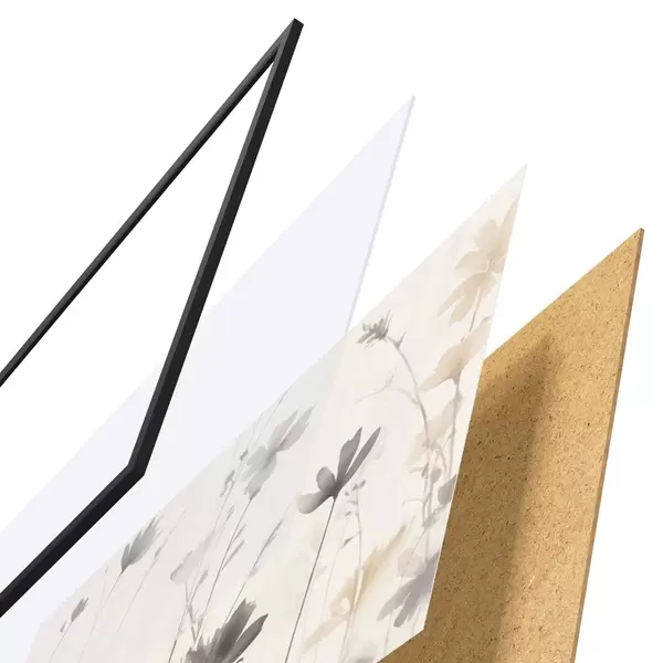 Das Poster besteht aus einem Rahmen, Plexiglas, einem gedruckten Bild und einer Rückwand aus Spanplatten. Dank der Halterungen auf der Rückseite kann das Poster sofort an die Wand gehängt werden.