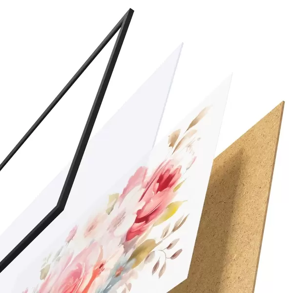 Das Poster besteht aus einem Rahmen, Plexiglas, einem gedruckten Bild und einer Rückwand aus Spanplatten. Dank der Halterungen auf der Rückseite kann das Poster sofort an die Wand gehängt werden.
