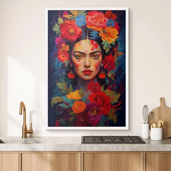 Poster Frau Porträt mit floralen Rahmen in hellen abstrakten Stil Nr f42653