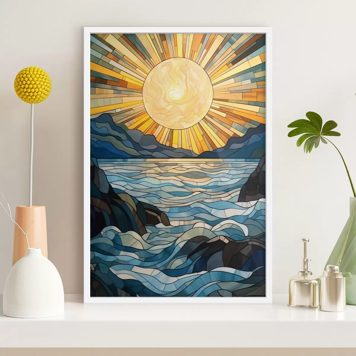 Poster Sonne und Wellen im Stil der Glasmalerei f42654