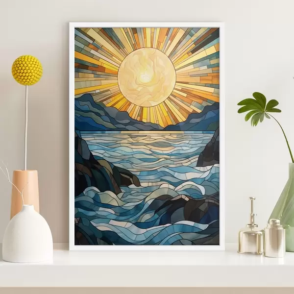 Poster Sonne und Wellen im Stil der Glasmalerei Nr f42654