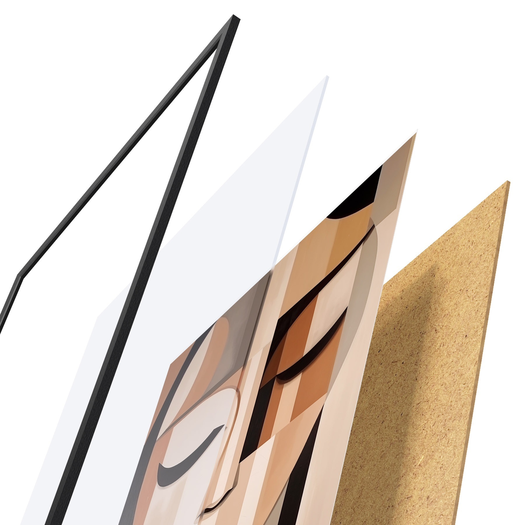 Das Poster besteht aus einem Rahmen, Plexiglas, einem gedruckten Bild und einer Rückwand aus Spanplatten. Dank der Halterungen auf der Rückseite kann das Poster sofort an die Wand gehängt werden.