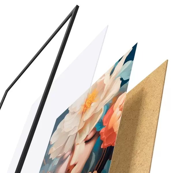 Das Poster besteht aus einem Rahmen, Plexiglas, einem gedruckten Bild und einer Rückwand aus Spanplatten. Dank der Halterungen auf der Rückseite kann das Poster sofort an die Wand gehängt werden.