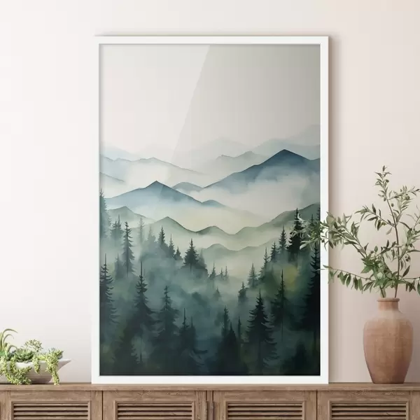Poster Neblige Landschaft mit Bergen und Wald Nr f42662