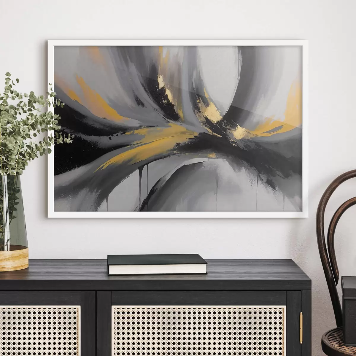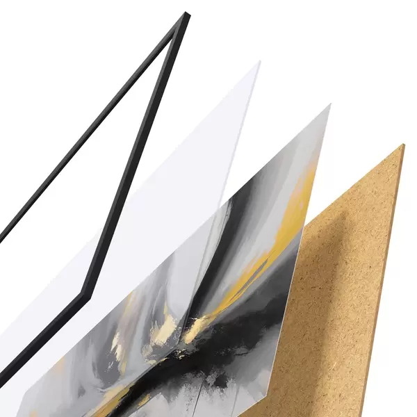 Das Poster besteht aus einem Rahmen, Plexiglas, einem gedruckten Bild und einer Rückwand aus Spanplatten. Dank der Halterungen auf der Rückseite kann das Poster sofort an die Wand gehängt werden.
