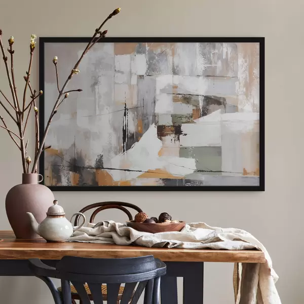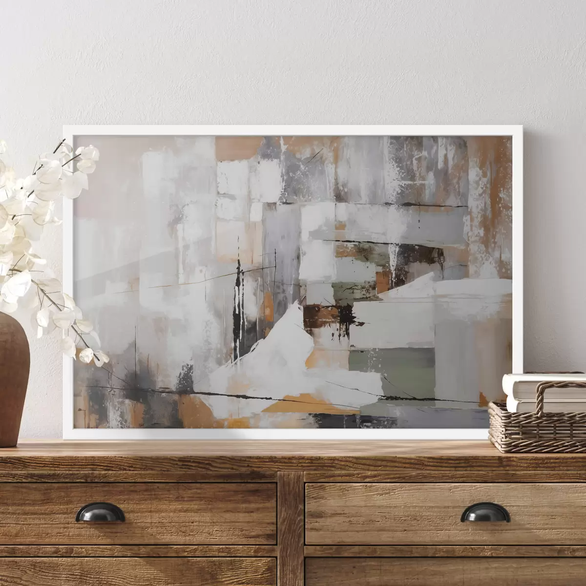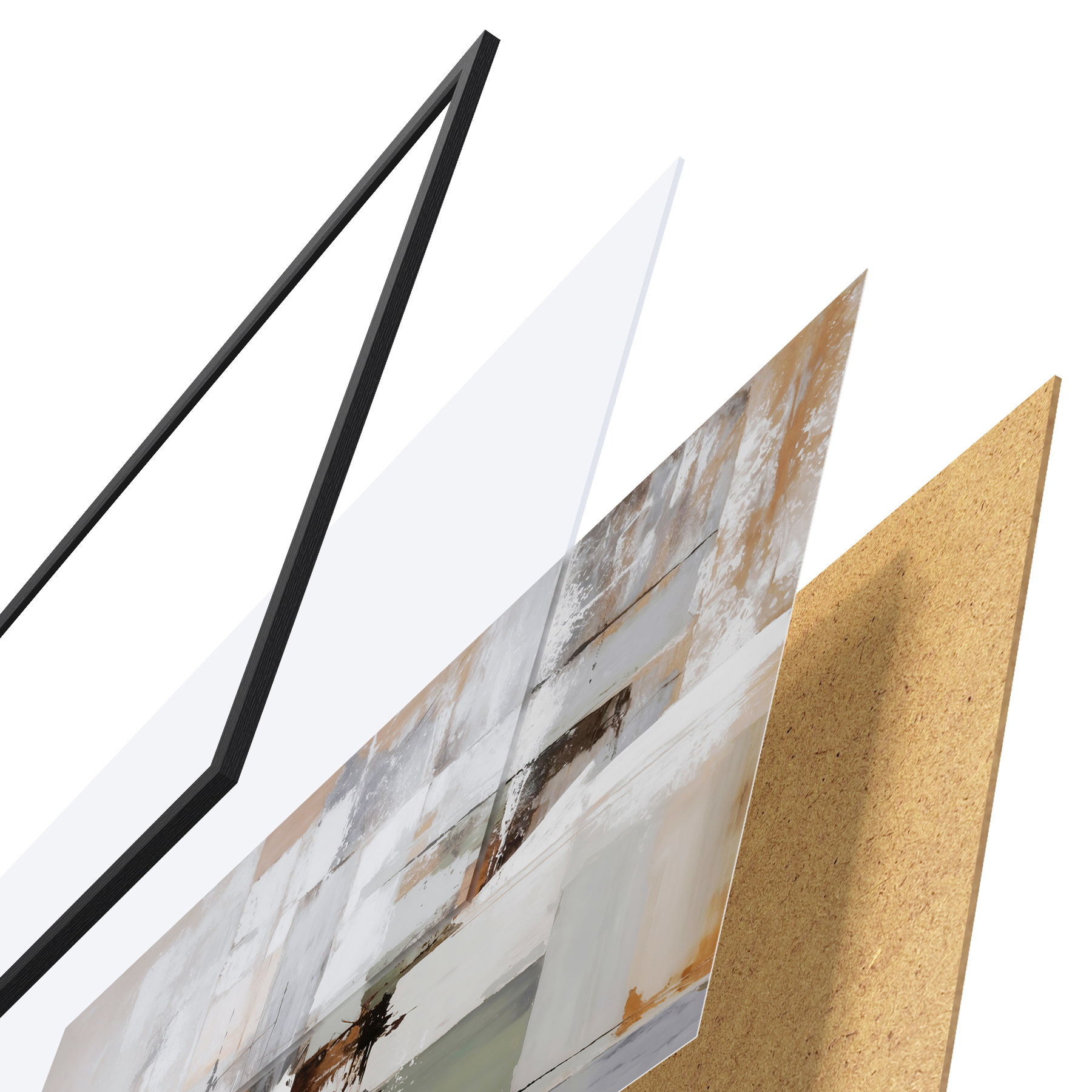 Das Poster besteht aus einem Rahmen, Plexiglas, einem gedruckten Bild und einer Rückwand aus Spanplatten. Dank der Halterungen auf der Rückseite kann das Poster sofort an die Wand gehängt werden.
