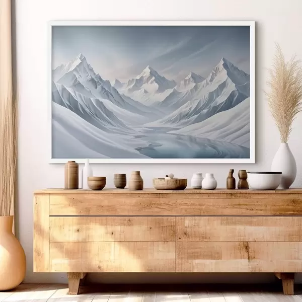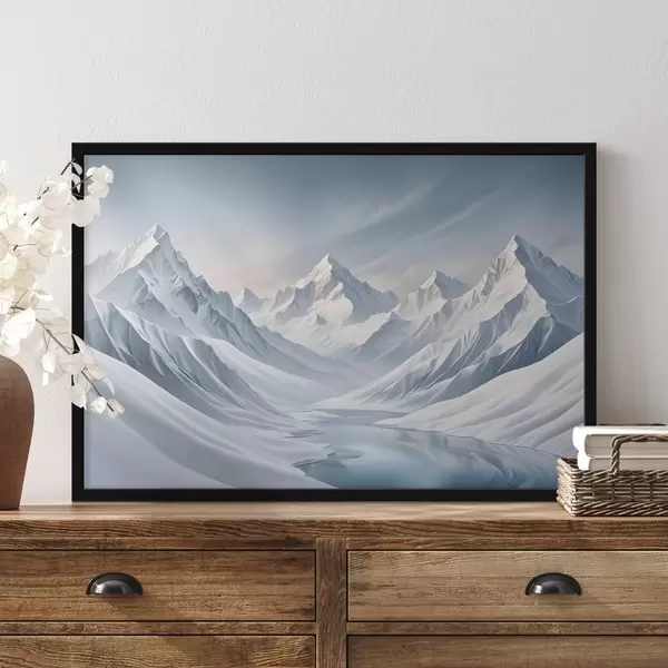 Poster Schneebedeckte Berge mit scharfen Gipfeln und einem sanft abfallenden Himmel, der von blass zu hellblau übergeht Nr f42724