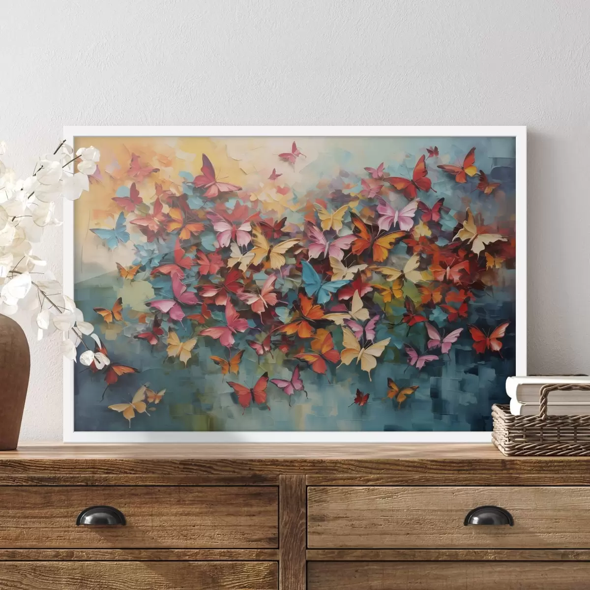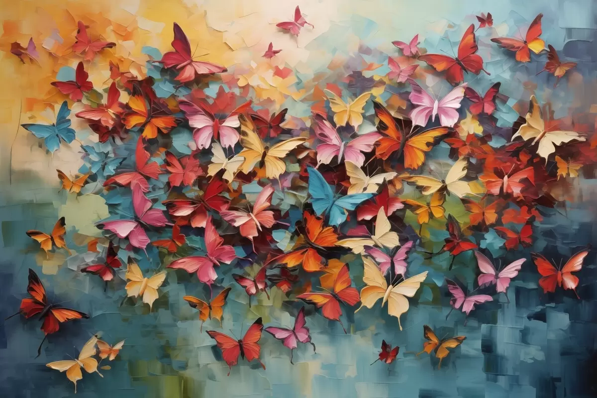 Poster Eine lebendige Reihe von Schmetterlingen in verschiedenen Farben Nachahmung der Ölmalerei Nr f42728