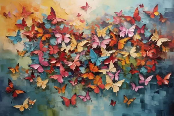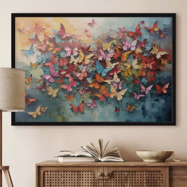Poster Eine lebendige Reihe von Schmetterlingen in verschiedenen Farben Nachahmung der Ölmalerei f42728