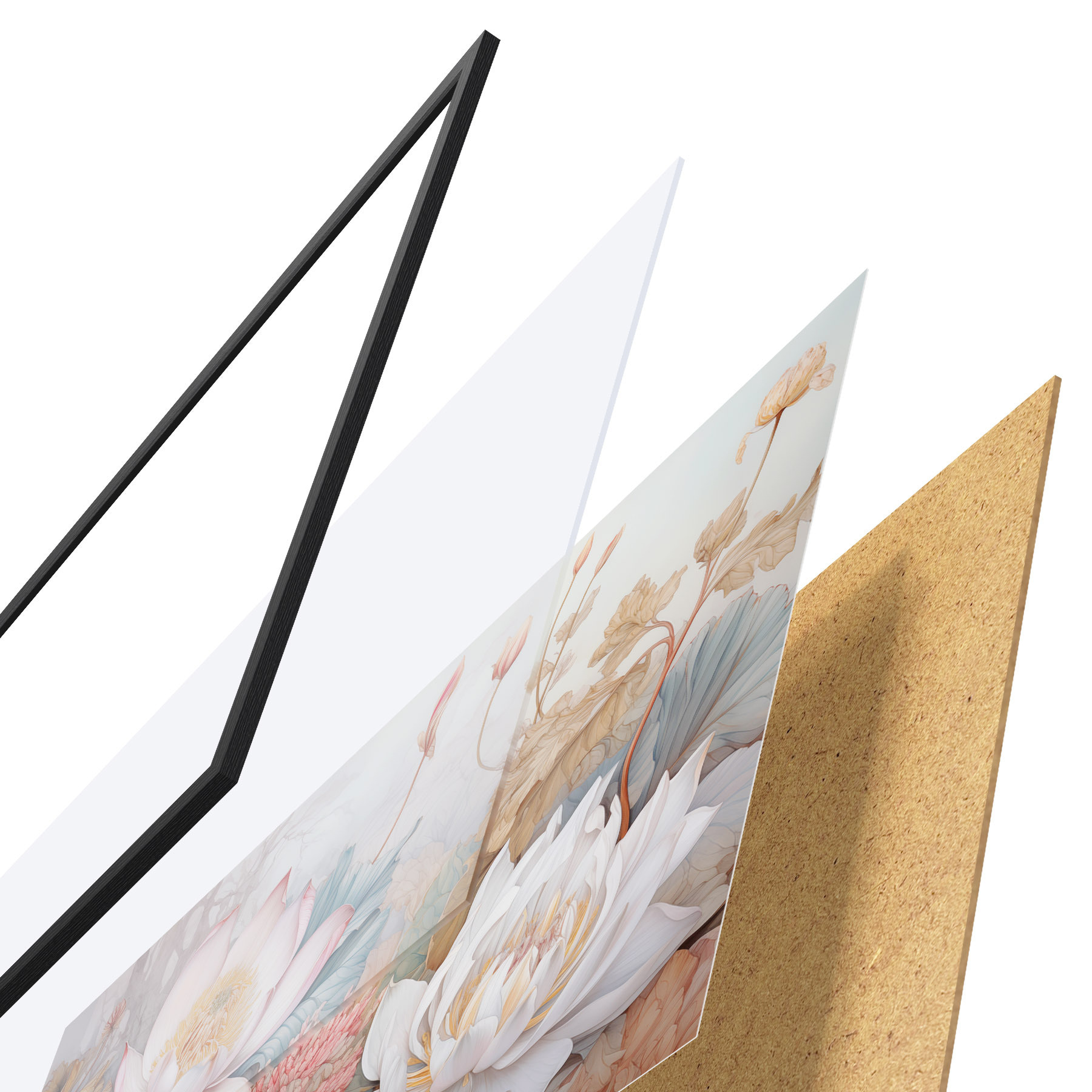 Das Poster besteht aus einem Rahmen, Plexiglas, einem gedruckten Bild und einer Rückwand aus Spanplatten. Dank der Halterungen auf der Rückseite kann das Poster sofort an die Wand gehängt werden.