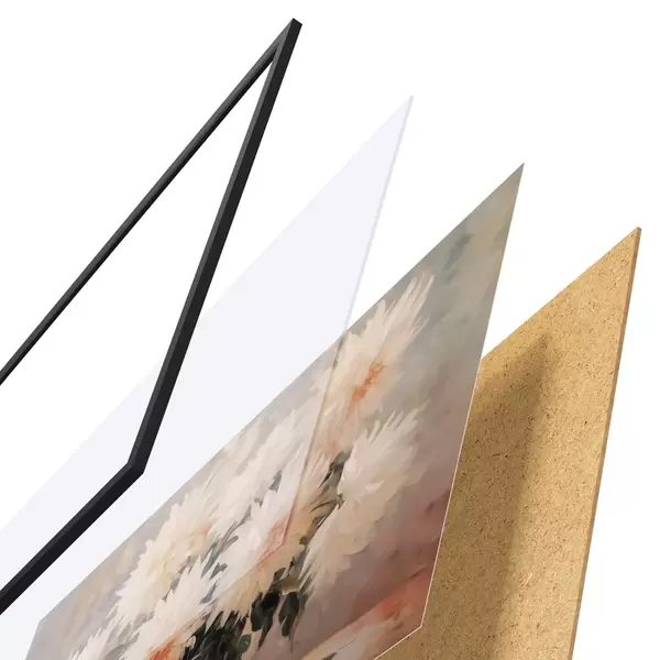Das Poster besteht aus einem Rahmen, Plexiglas, einem gedruckten Bild und einer Rückwand aus Spanplatten. Dank der Halterungen auf der Rückseite kann das Poster sofort an die Wand gehängt werden.