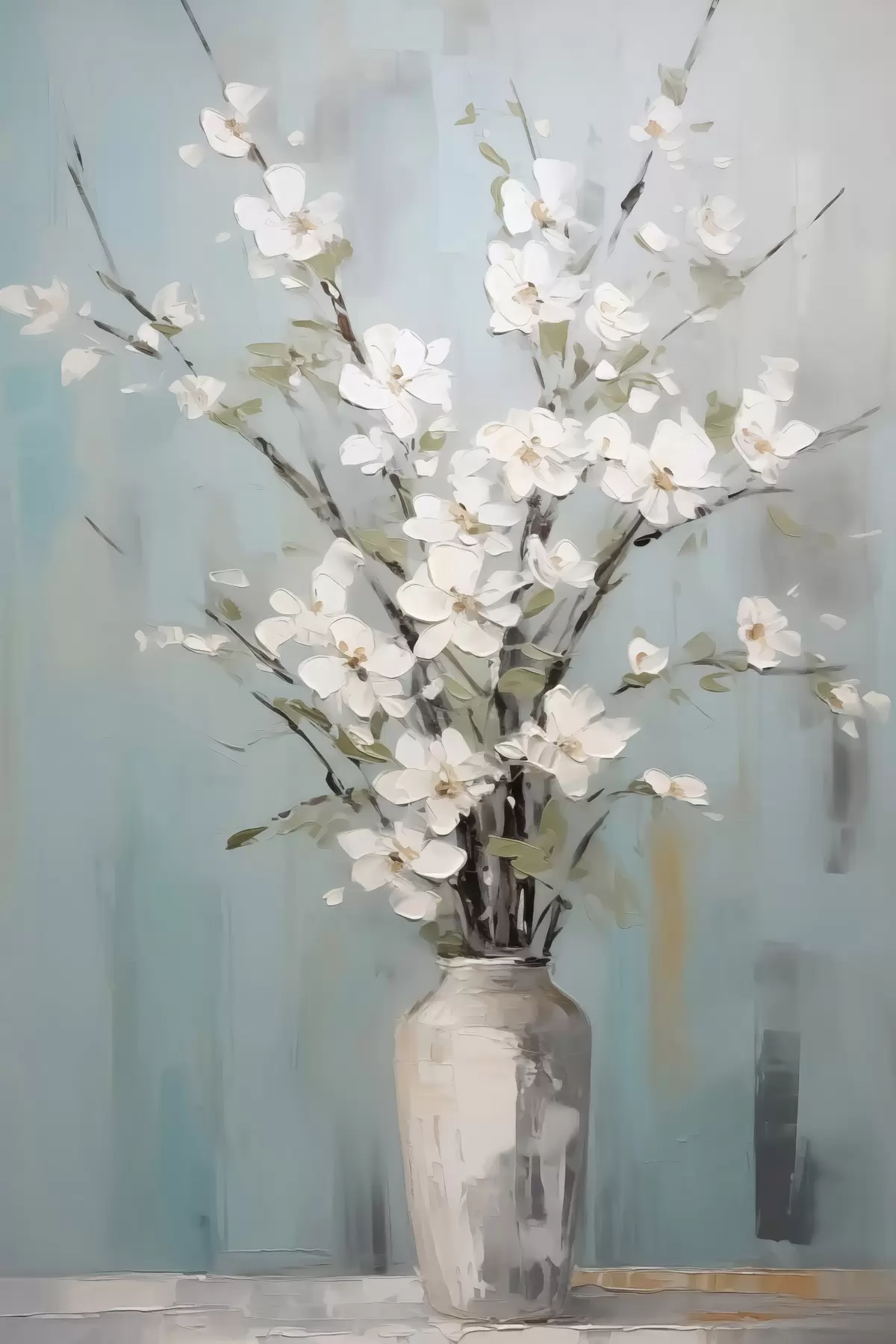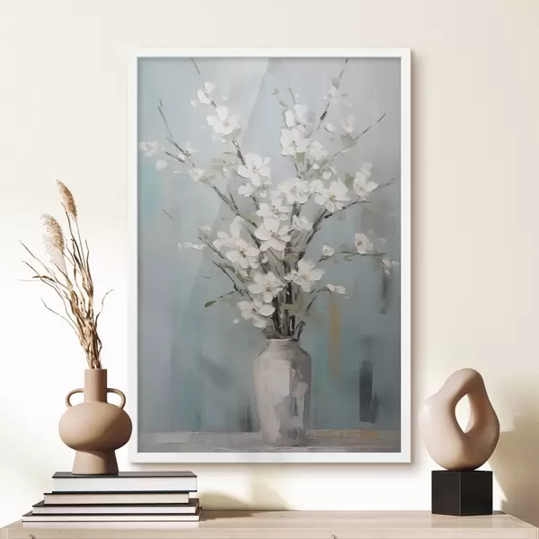 Poster Zweige mit weißen Blumen in einer Vase Nr f42746