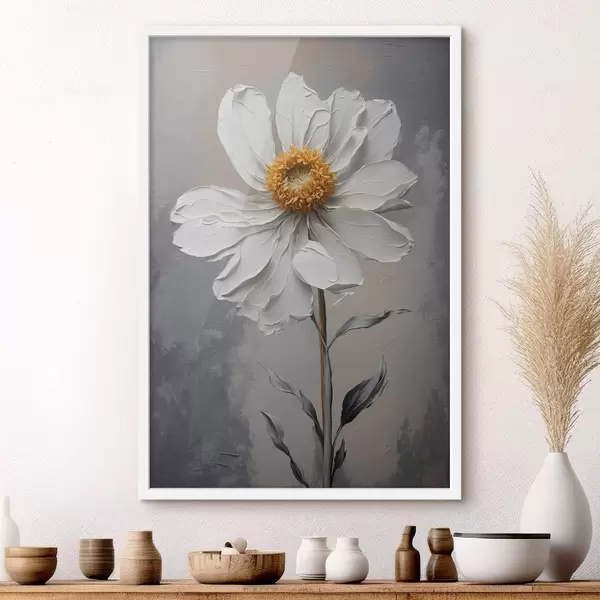 Poster Kamille auf weißem Grund in Ölgemälde-Stil f42758