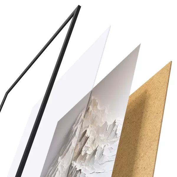 Das Poster besteht aus einem Rahmen, Plexiglas, einem gedruckten Bild und einer Rückwand aus Spanplatten. Dank der Halterungen auf der Rückseite kann das Poster sofort an die Wand gehängt werden.