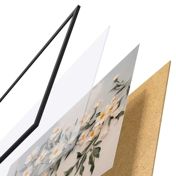 Das Poster besteht aus einem Rahmen, Plexiglas, einem gedruckten Bild und einer Rückwand aus Spanplatten. Dank der Halterungen auf der Rückseite kann das Poster sofort an die Wand gehängt werden.