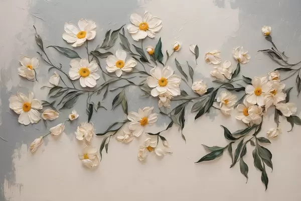 Poster Weißer Floweff und Leavef auf weißem und gfay Backgfound f42764