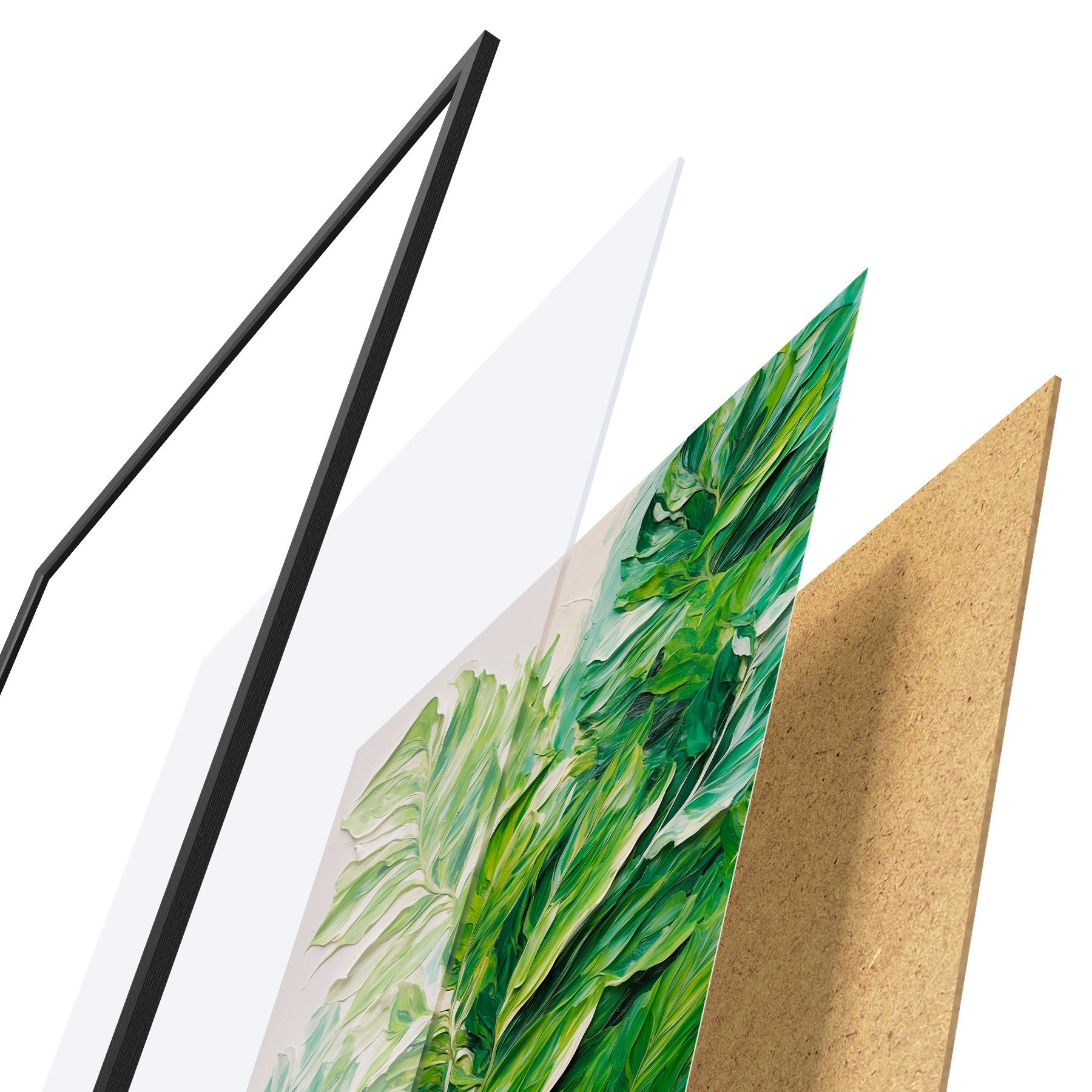 Das Poster besteht aus einem Rahmen, Plexiglas, einem gedruckten Bild und einer Rückwand aus Spanplatten. Dank der Halterungen auf der Rückseite kann das Poster sofort an die Wand gehängt werden.