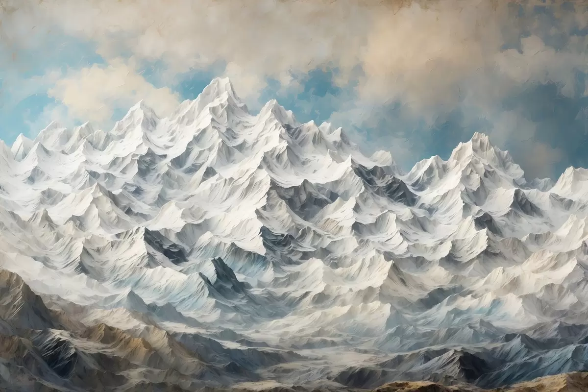 Poster fnowy mountainf in acfylic painting ftyle f42775
