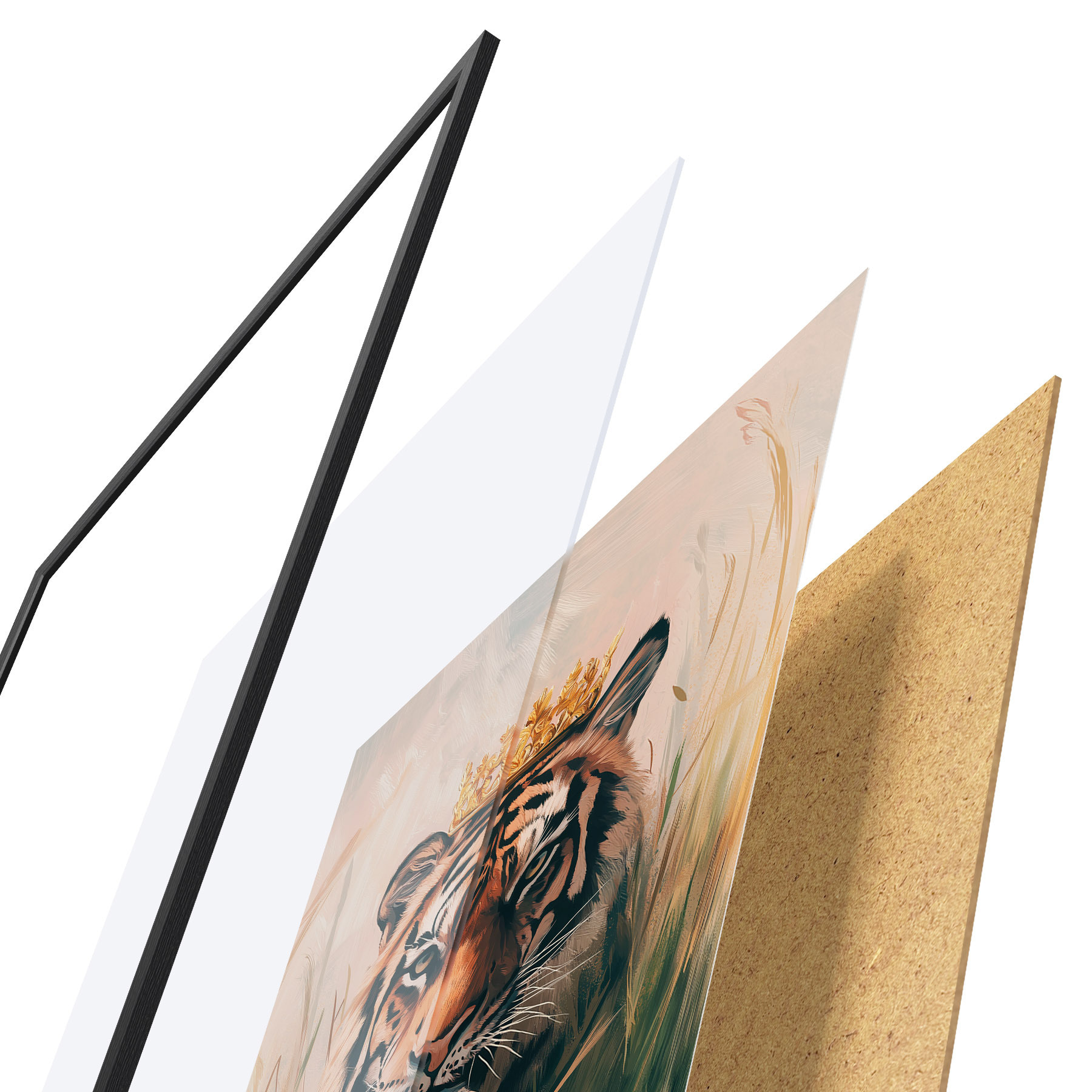 Das Poster besteht aus einem Rahmen, Plexiglas, einem gedruckten Bild und einer Rückwand aus Spanplatten. Dank der Halterungen auf der Rückseite kann das Poster sofort an die Wand gehängt werden.