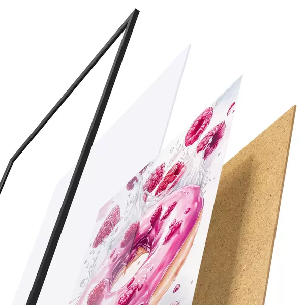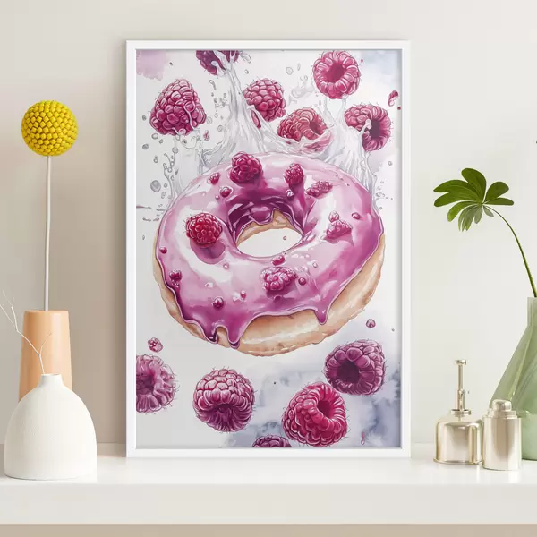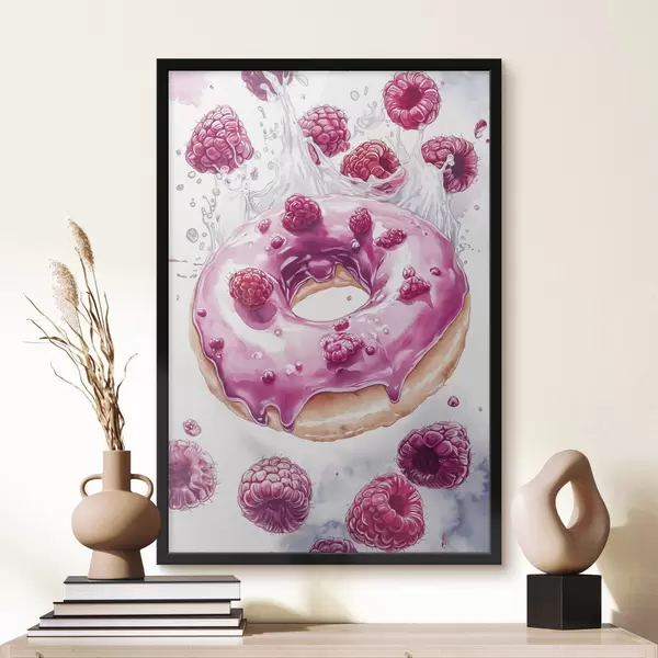 Poster Donut mit Himbeeren mit rosa Glasur, leckeres Dessert, Aquarell-Stil Nr f42789