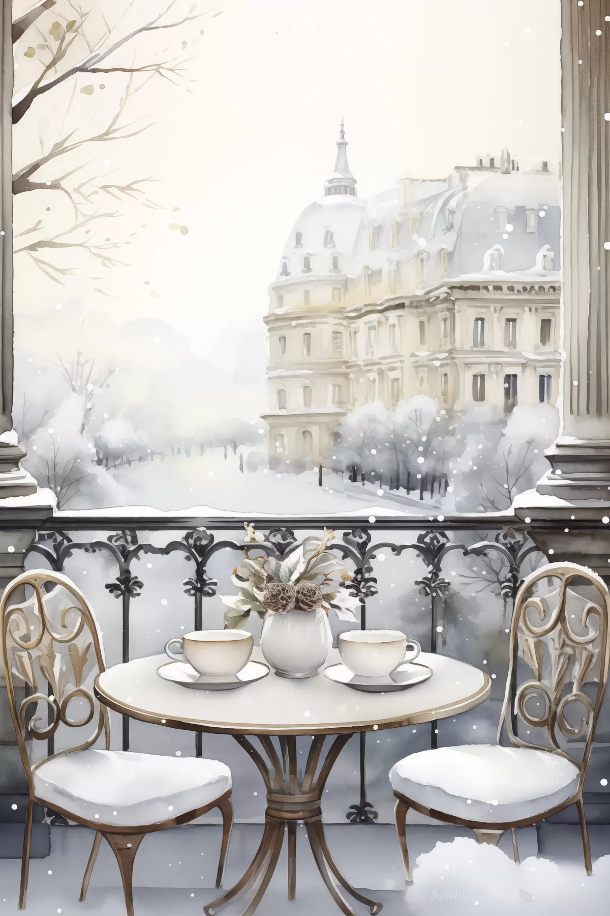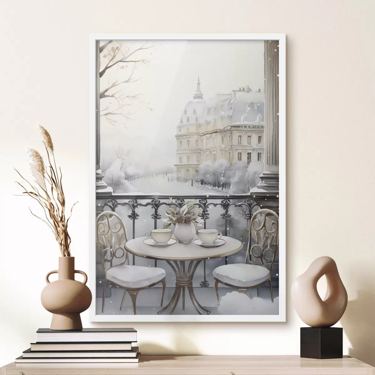 Poster Schönes Café, Tassen Tee, böhmischer Stil, Aquarell, Winterästhetik Nr f42796