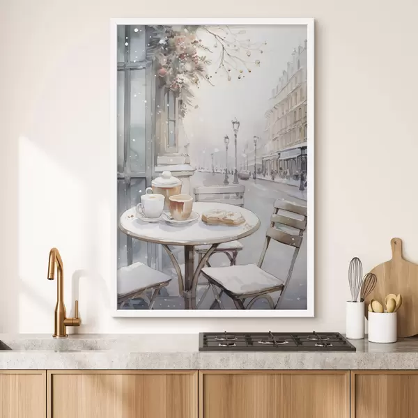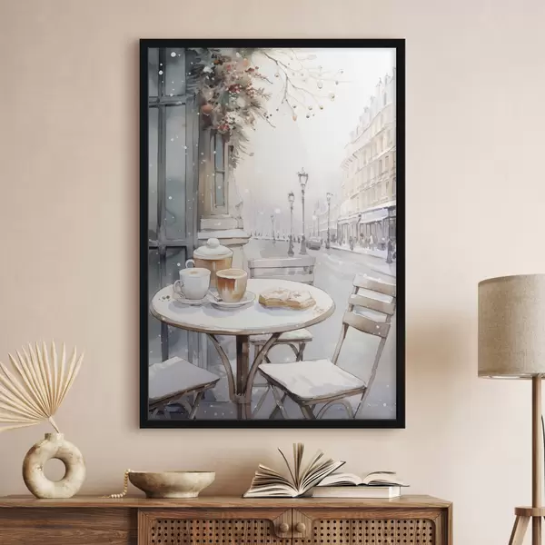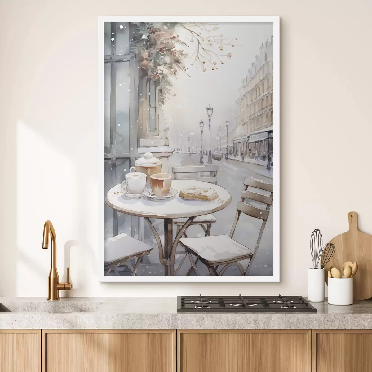 Poster Ästhetisches Straßencafé, Frankreich, frische Bäckerei, Zeichnung im Aquarellstil f42798