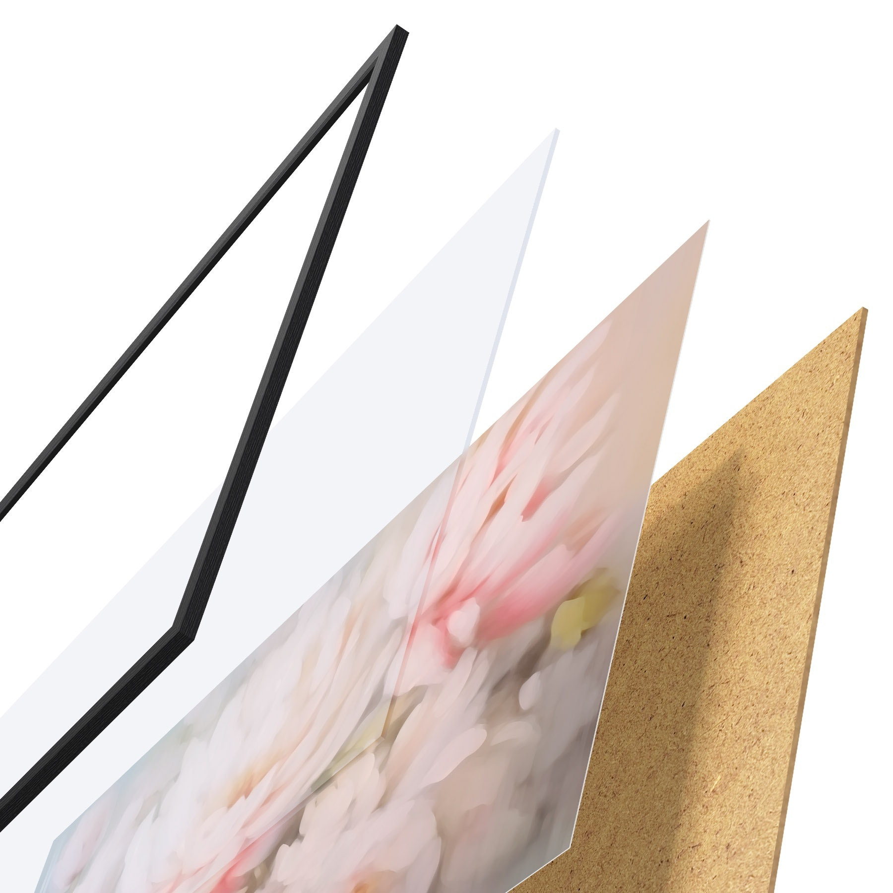Das Poster besteht aus einem Rahmen, Plexiglas, einem gedruckten Bild und einer Rückwand aus Spanplatten. Dank der Halterungen auf der Rückseite kann das Poster sofort an die Wand gehängt werden.