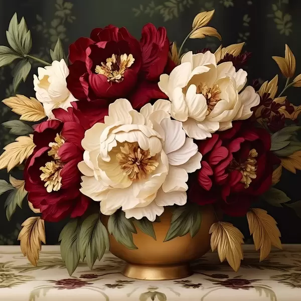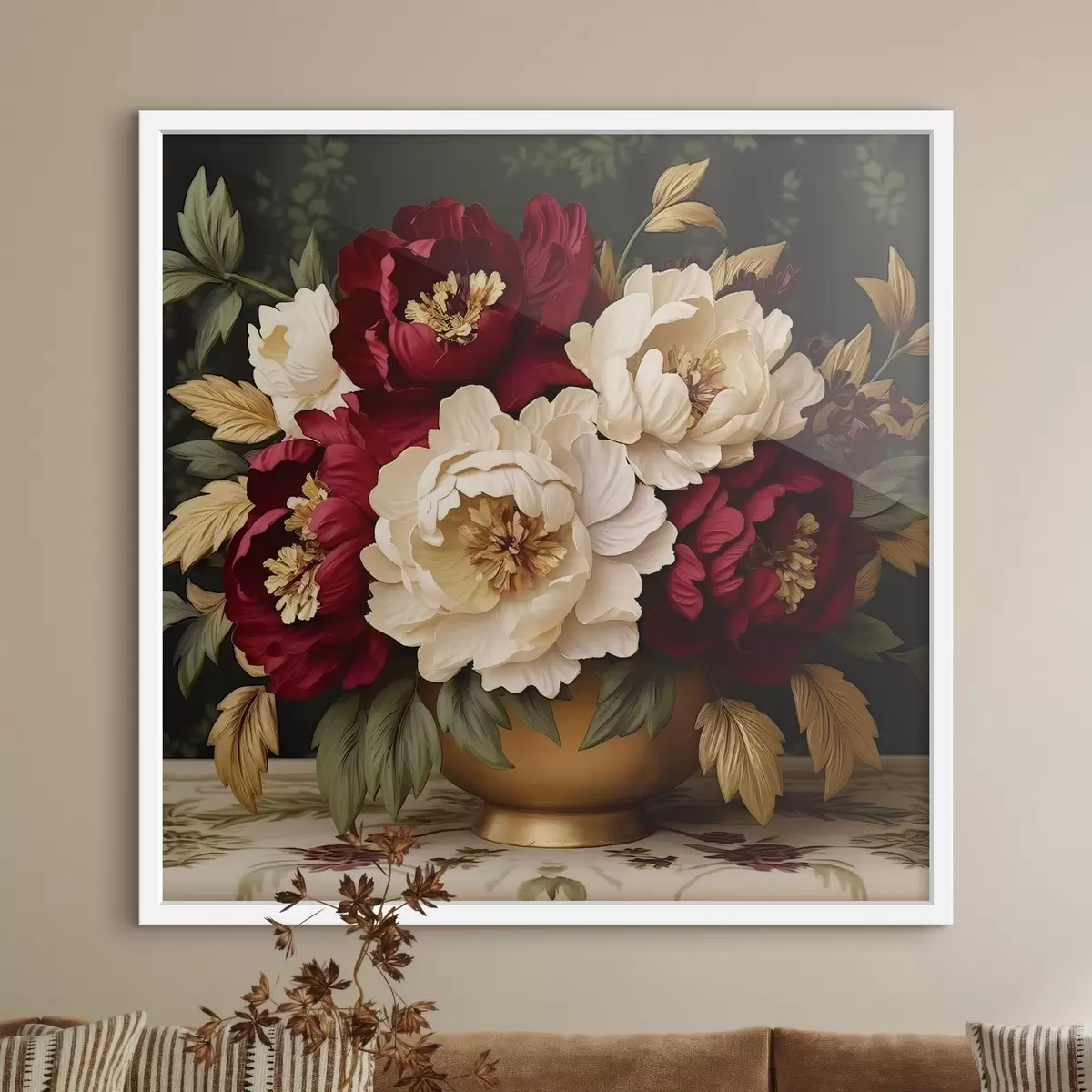Poster Rote und weiße Pfingstrosen in einer Vase Nr f42820